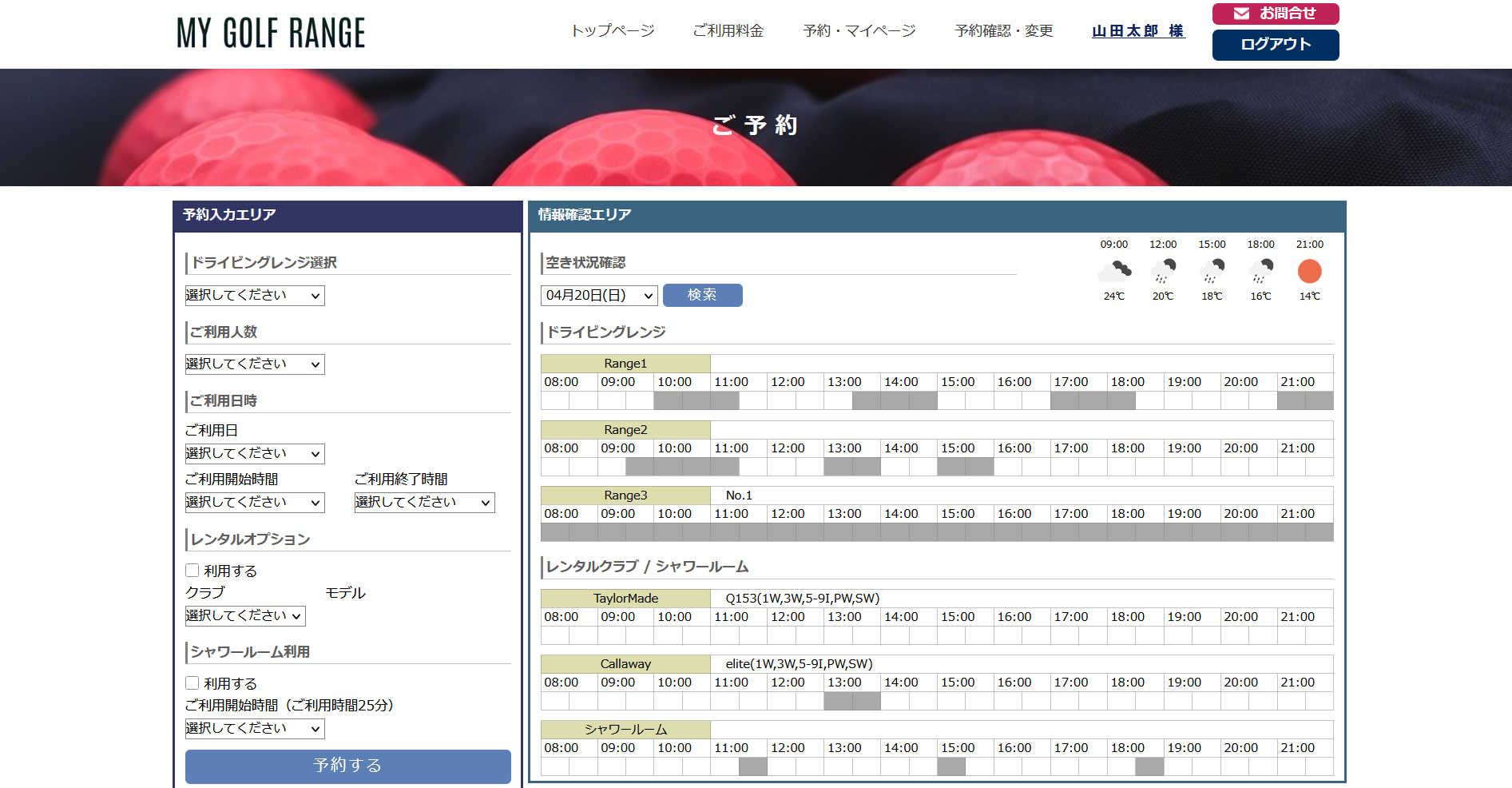 (仮想の)会員制インドアゴルフ練習場の予約システムです。