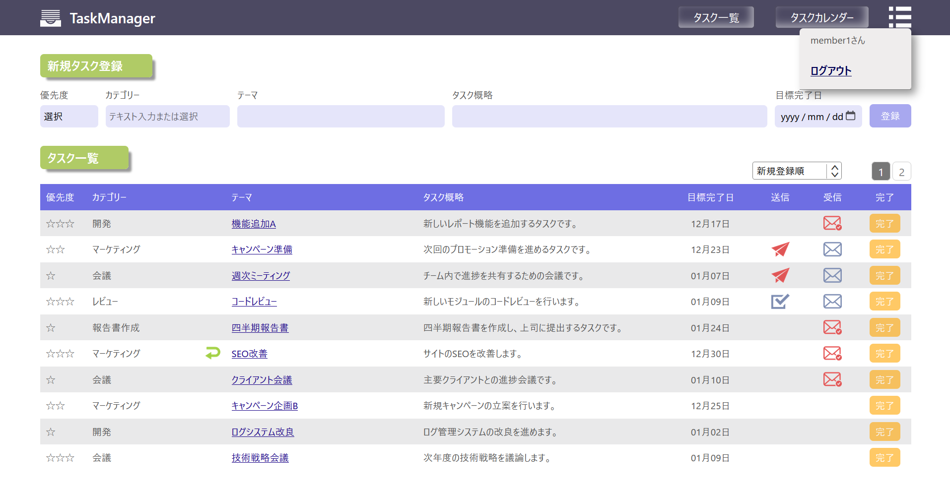 ステータス表示やCSRF脆弱性対策なども盛り込んでいます。Work-2laravel_TaskManager