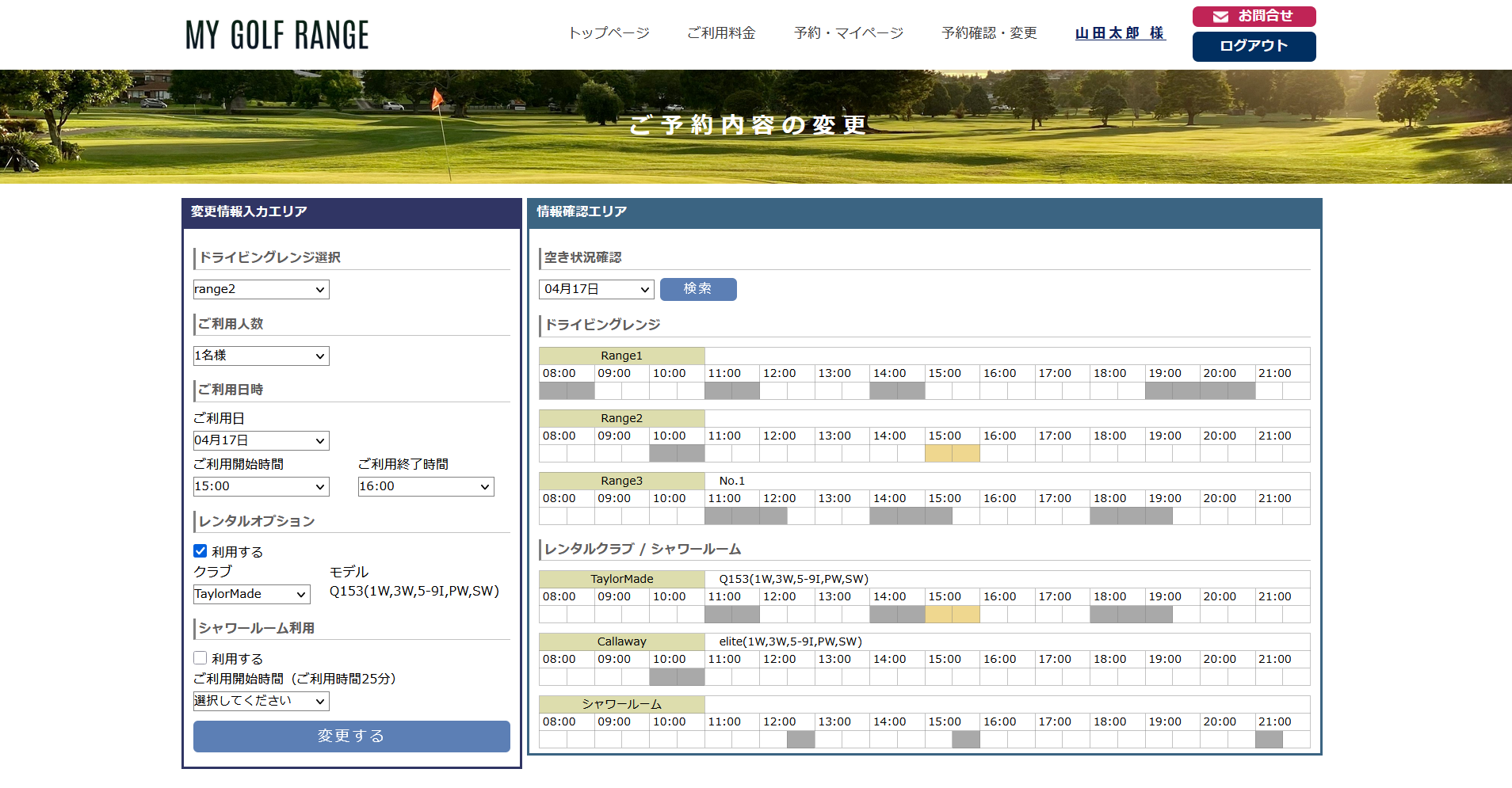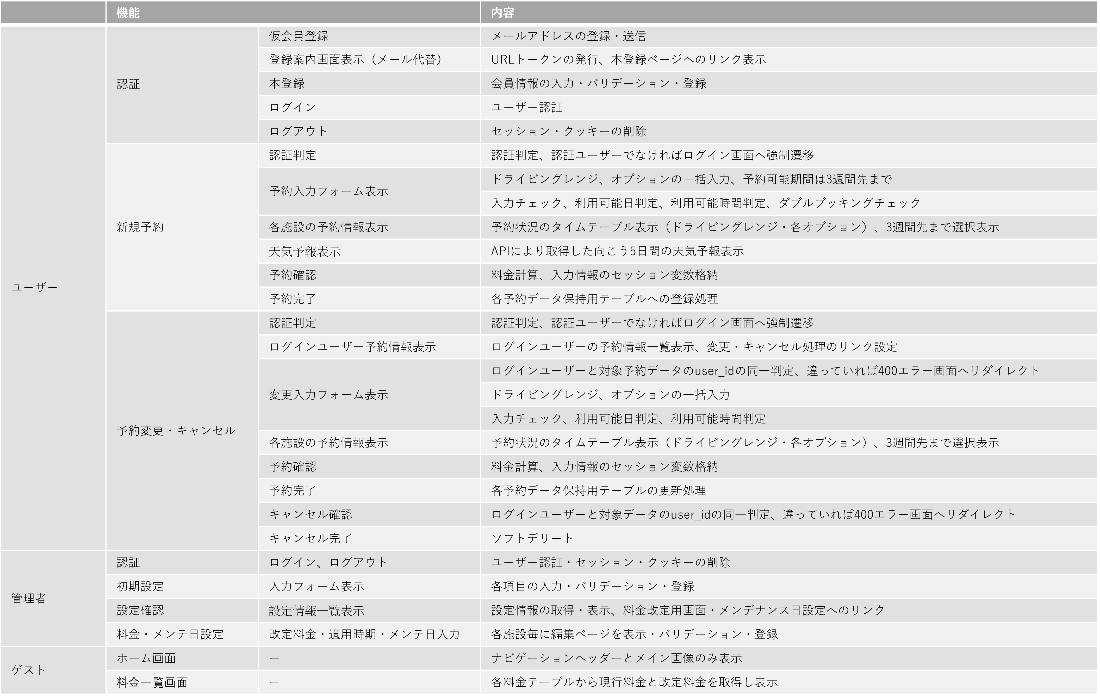 (仮想の)会員制インドアゴルフ練習場の予約システムです。