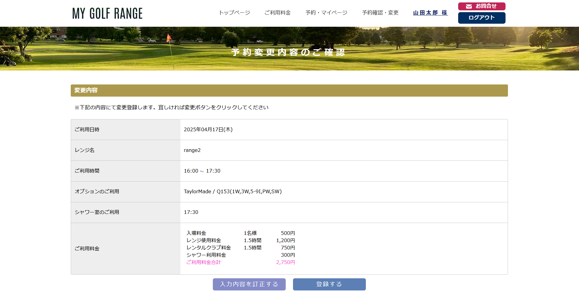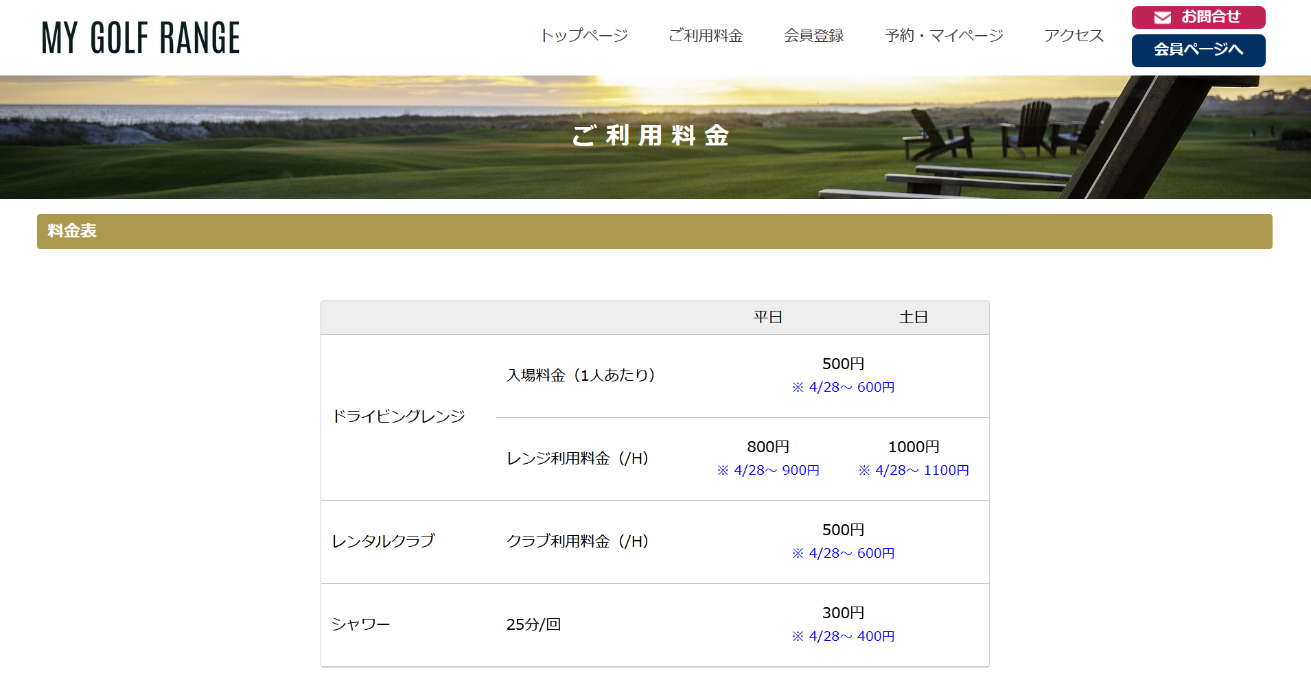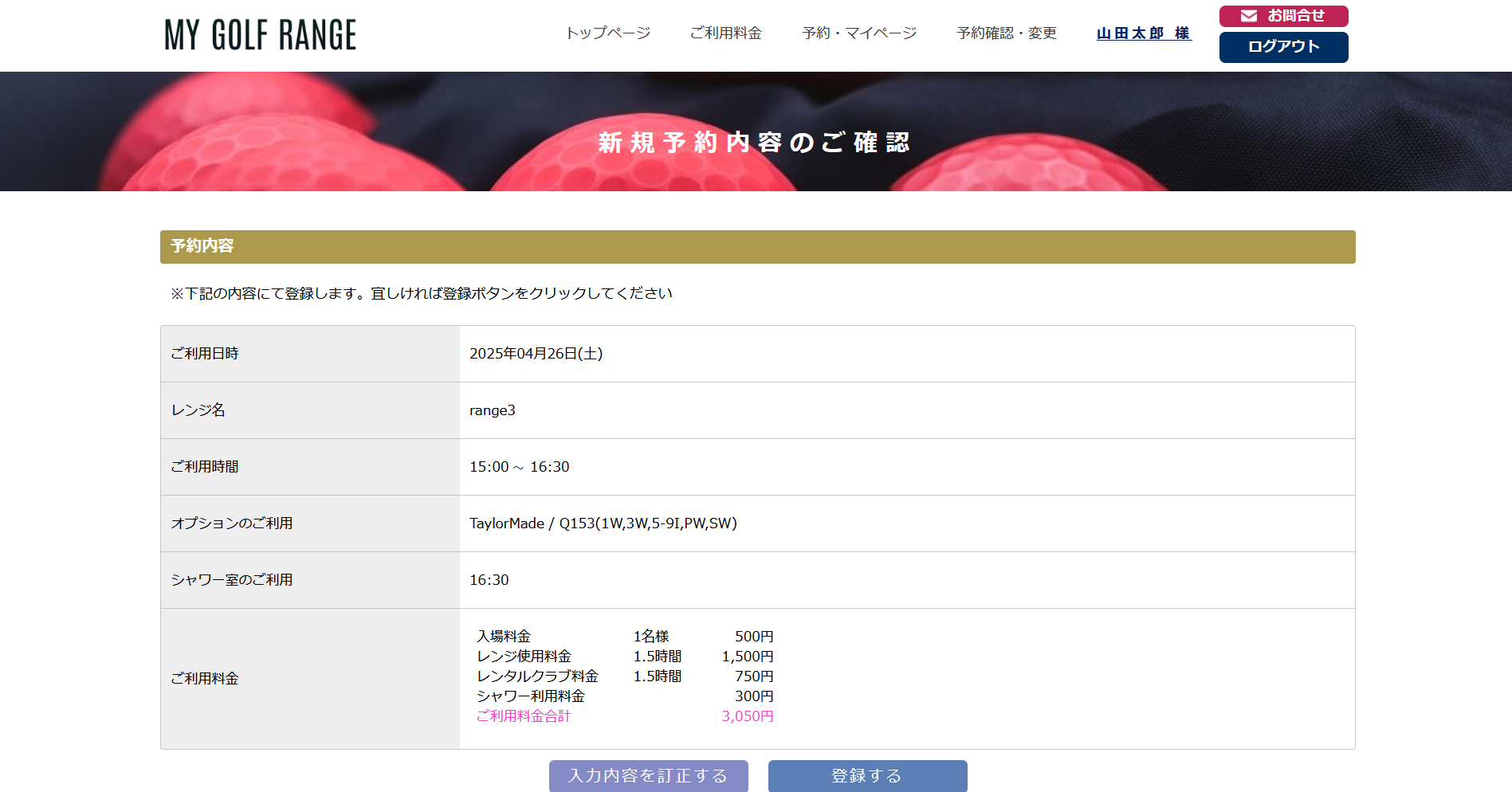 レンタルクラブやシャワー利用などのオプションも設定してみました。Work-4Laravel_MyGolfRange